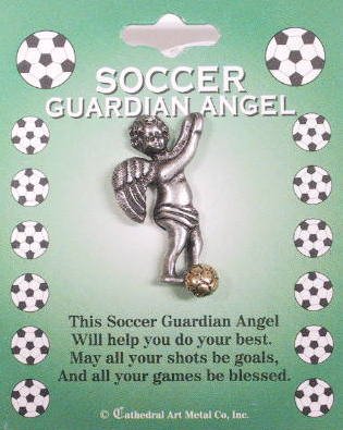 A pewter angel to protect a soccer enthusiast.